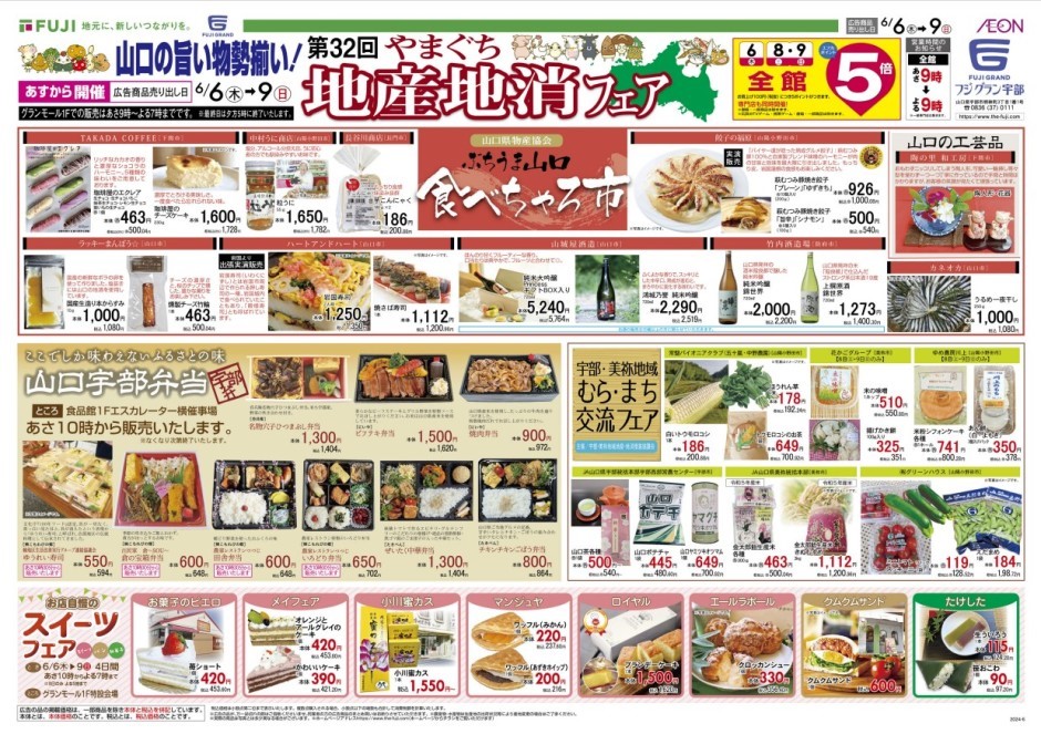 6月6日~9日「フジグラン宇部」にて【やまぐち地産地消フェア】が開催されます。