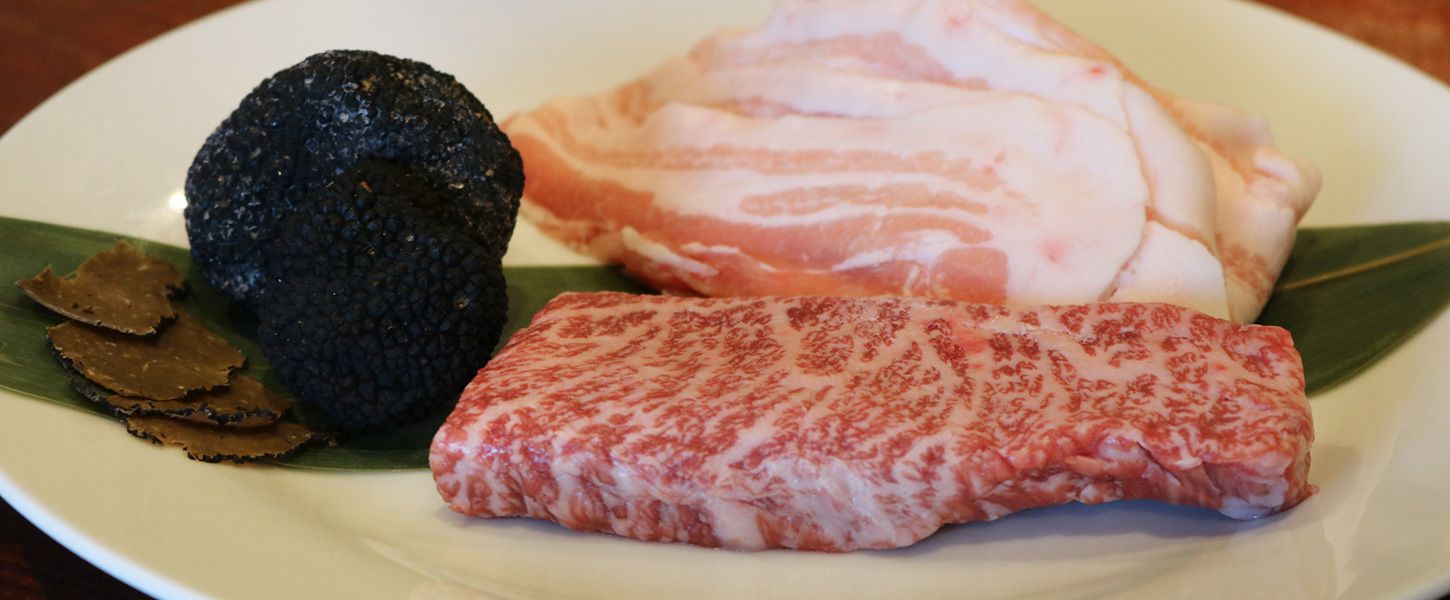 トリュフは、イタリア産の黒トリュフ(サマートリュフ)と白トリュフオイル。