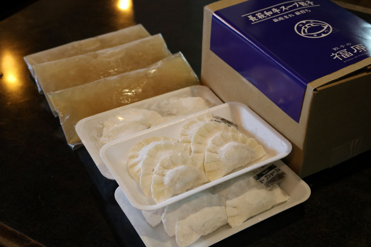 山口県萩市生まれの黒毛和牛「長萩和牛」を100%使用したスープ餃子です。
